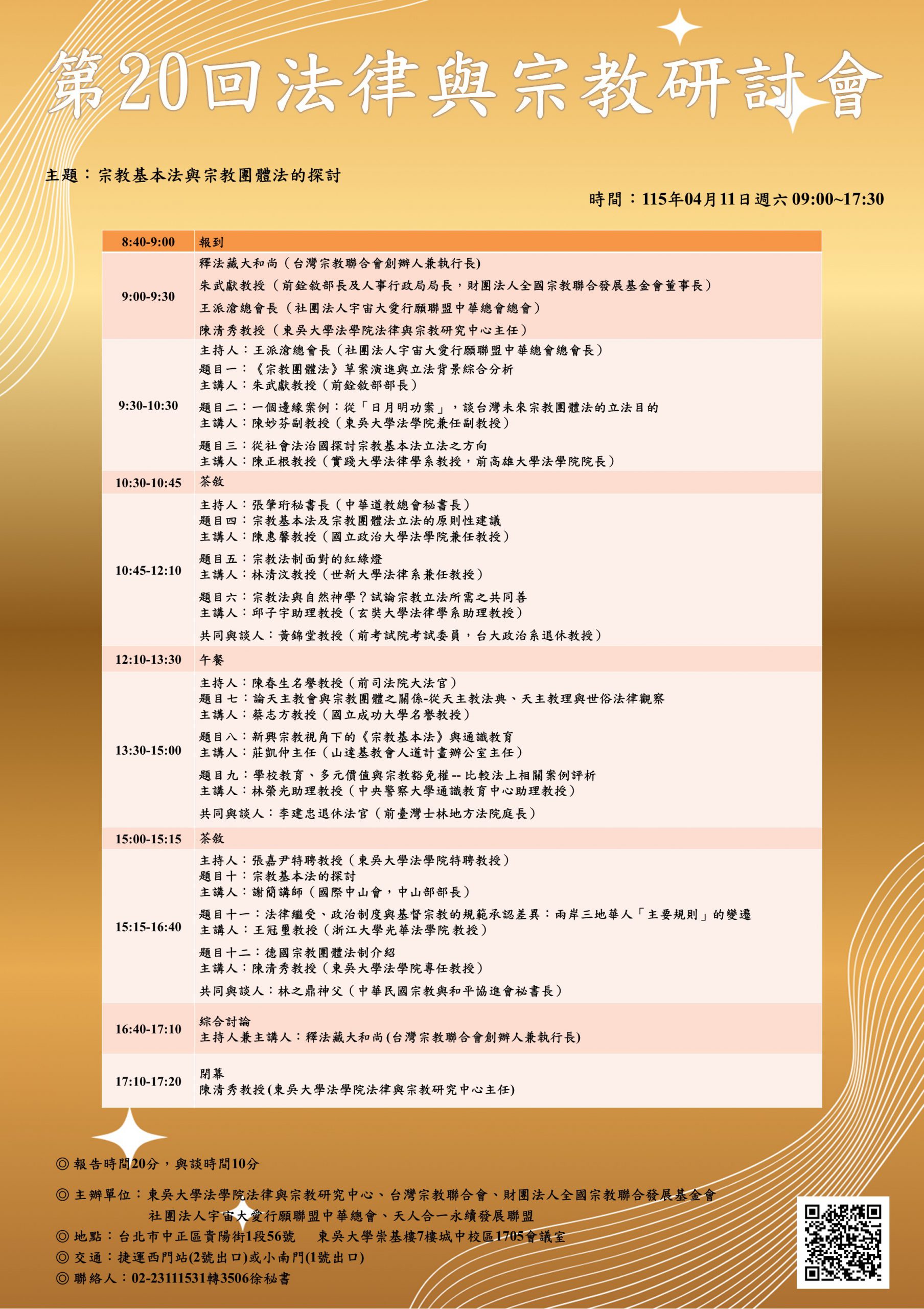 第 20 回法律與宗教研討會 Posted by humanright | 4 月 2, 2026 | 會員消息 報名連結 : https://docs.google.com/forms/d/1-SOVLtphmuC7nCImQMMJ2XMYS2DlPi1Mf9wNlETZo-w/viewform?edit_requested=true
